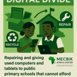 To collect, repair, and distribute used computers and tablets to public primary schools in the Elgeiyo Marakwet, Baringo and Uasin Gishu county in Kenya, providing access to digital education for children who would otherwise have none. Devices beyond repair will be responsibly recycled.